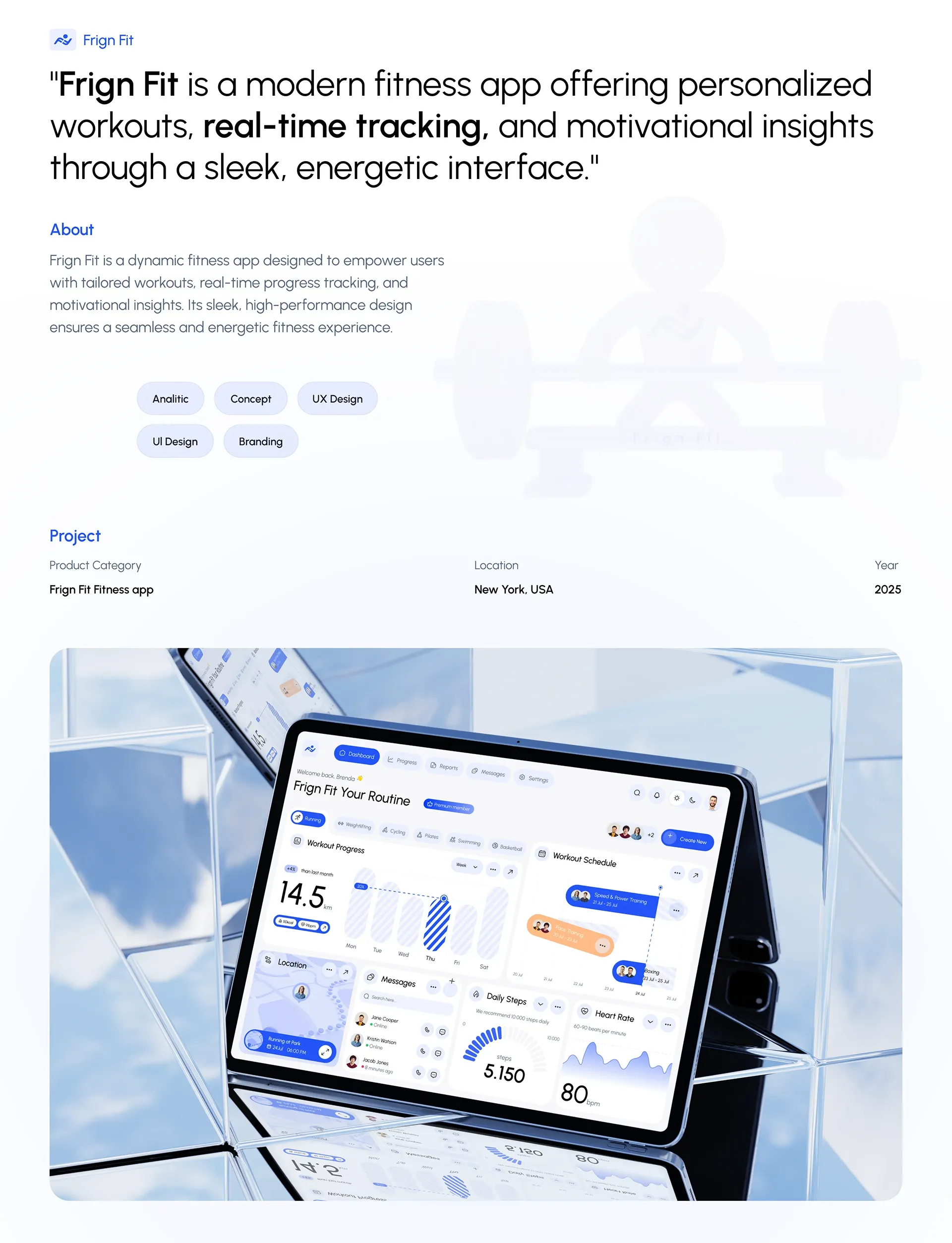 “Frign Fit is a modern fitness app offering personalized workouts, real-time tracking, and motivational insights through a sleek, energetic interface.”